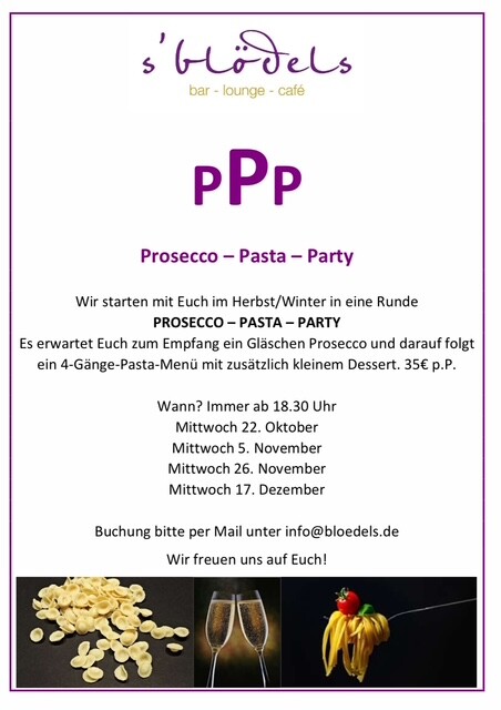 Wir wollen mit Euch schöne Mittwoche erleben mit Live-Cooking bei Prosecco-Pasta-Party